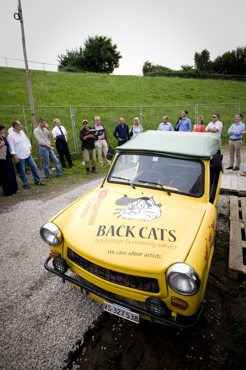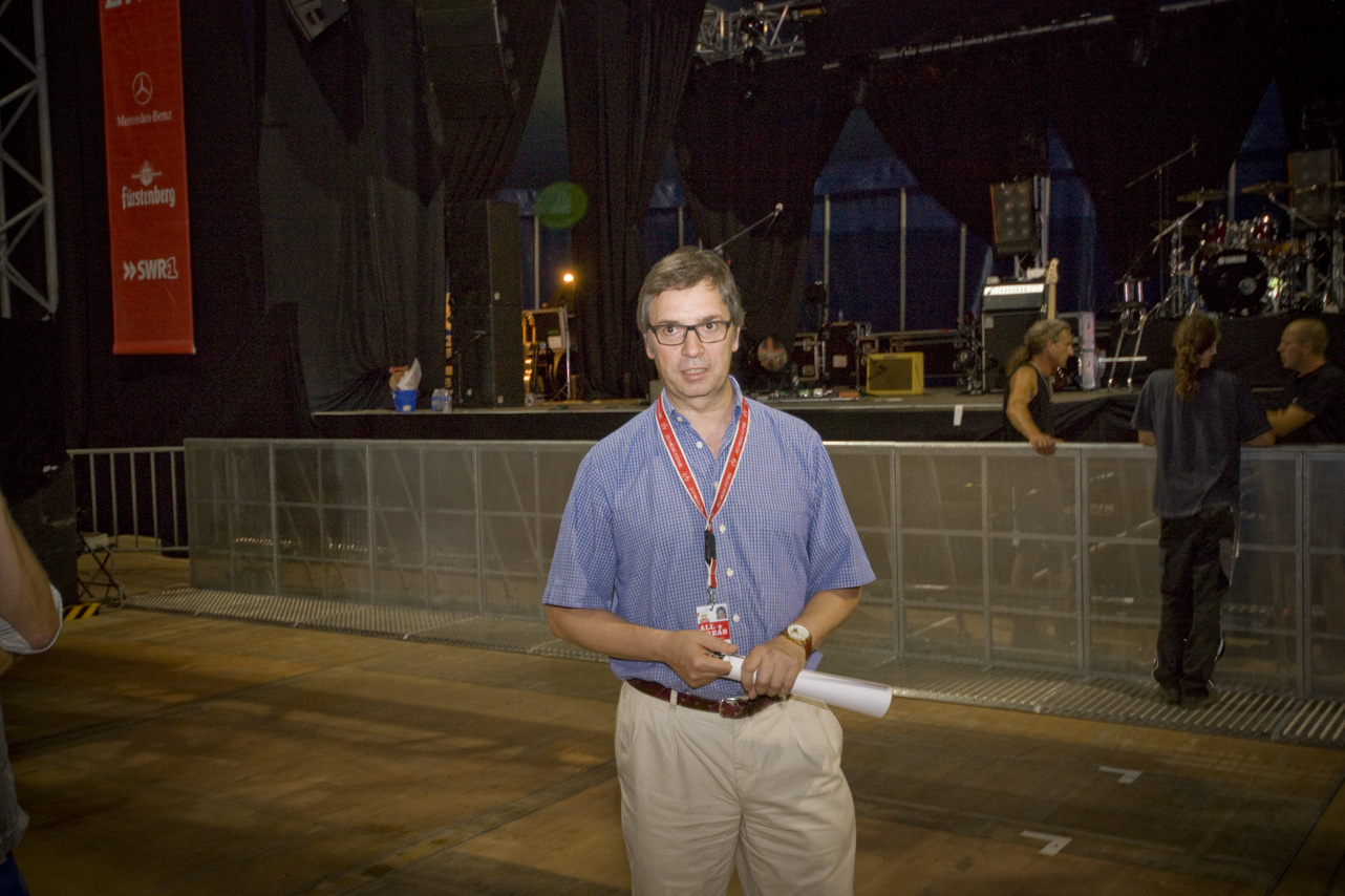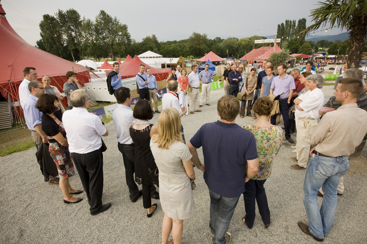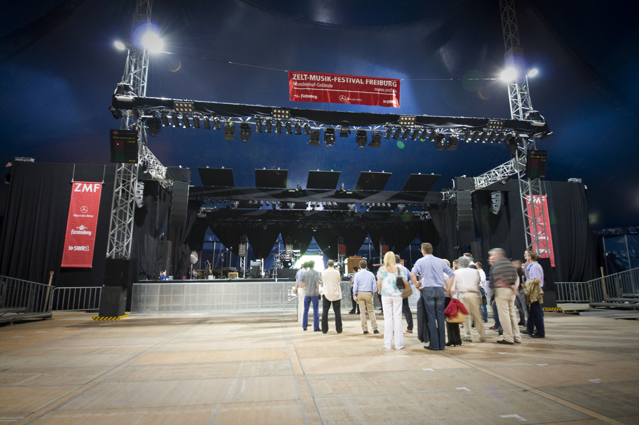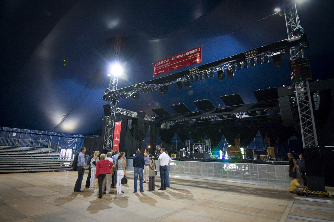 Christian Schulz hatte zum „Blick hinter die Kulissen“ des Freiburger Zeltmusikfestivals eingeladen. Dieter Pfaff ermöglichte, als Unternehmer und Mann der ersten Stunde des ZMF, diese besondere Entdeckungstour.