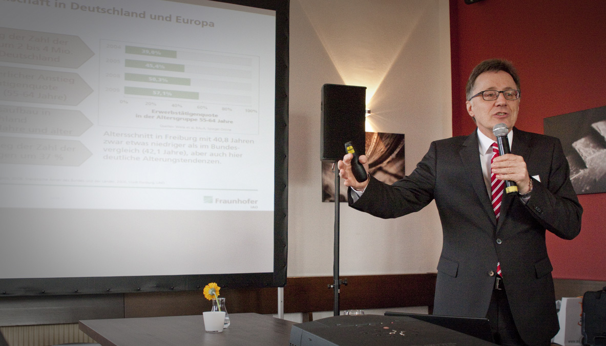 Und es ist eine Fläche, die urbane Entwicklungsmöglichkeiten bietet, wie sie besser kaum sein könnten, so Wilhelm Bauer, der stellvertretende Leiter des Fraunhofer-Instituts für Arbeitswirtschaft und Organisation IAO in Stuttgart: Bauer präsentierte in Freiburg einerseits die Erwartungen, die an moderne arbeits- und Wohnwelten der Zukunft gestellt werden, und verglich diese Erkenntnisse andererseits mit den Möglichkeiten, die das Güterbahnareal bietet. In einer alternden Gesellschaft, die mehr und mehr dem Trend „zurück in die Stadt“ folgt, neue Formen des Zusammenlebens sucht und findet, flexiblere Arbeitsformen verlangt und zudem auch noch lieber fußläufig erreichbare Infrastrukturen statt langer an- und Abfahrtswege bevorzugt, ist ein durchmischtes Quartier, wie es nun auf dem Güterbahngelände realisierbar wird, ein nahezu idealer Ansatz. „Wir werden ein immer bunteres Völkchen“, so Bauer, „und wir müssen in einer immer komplizierter werdenden Welt immer mehr miteinander kooperieren.“