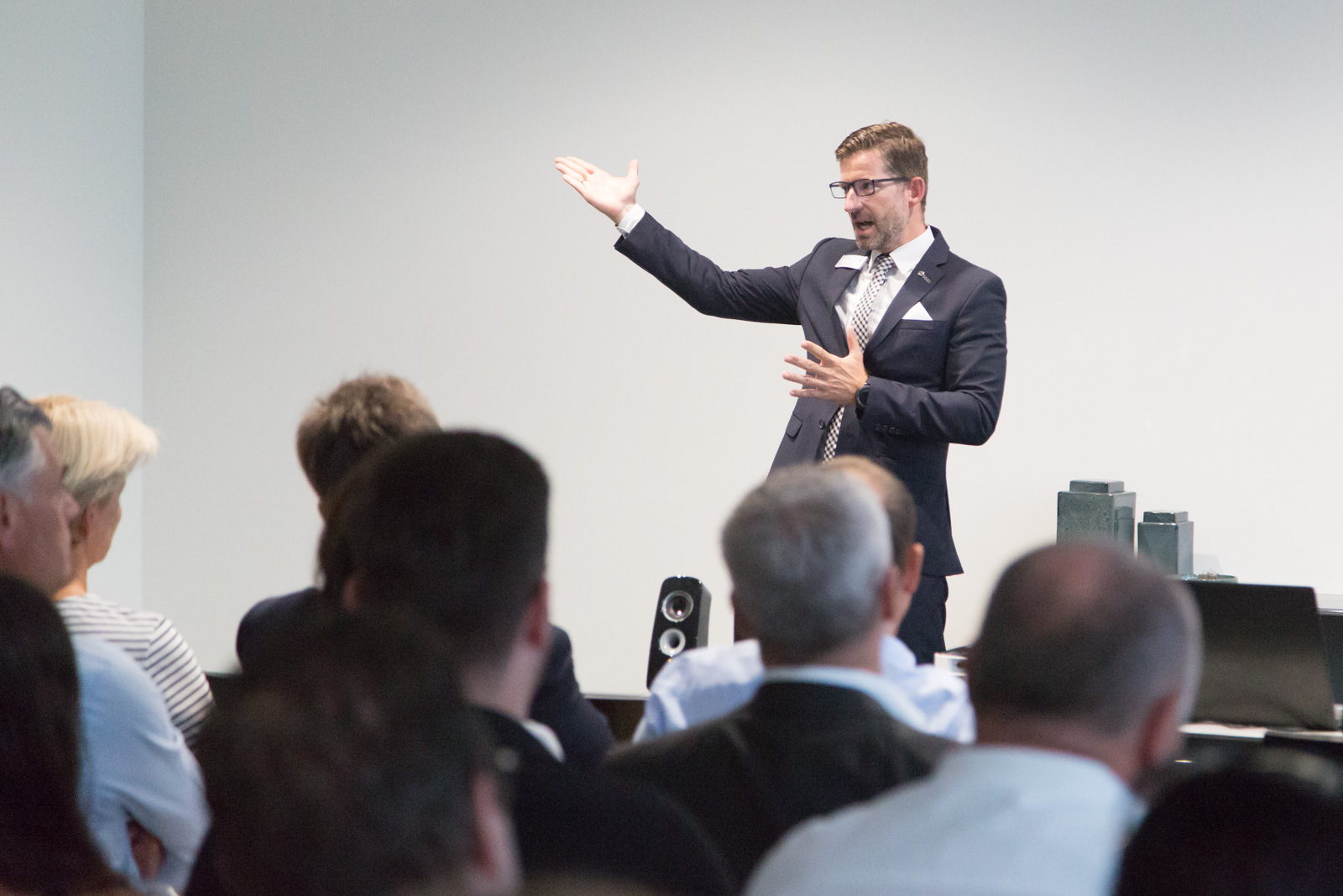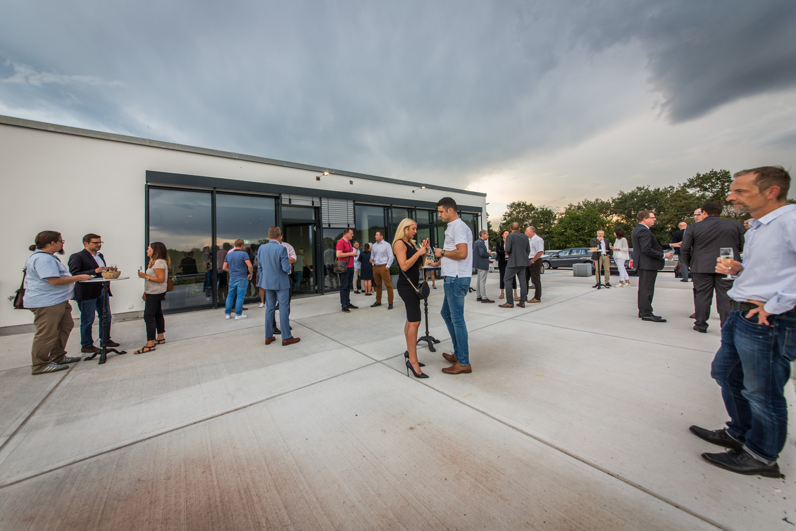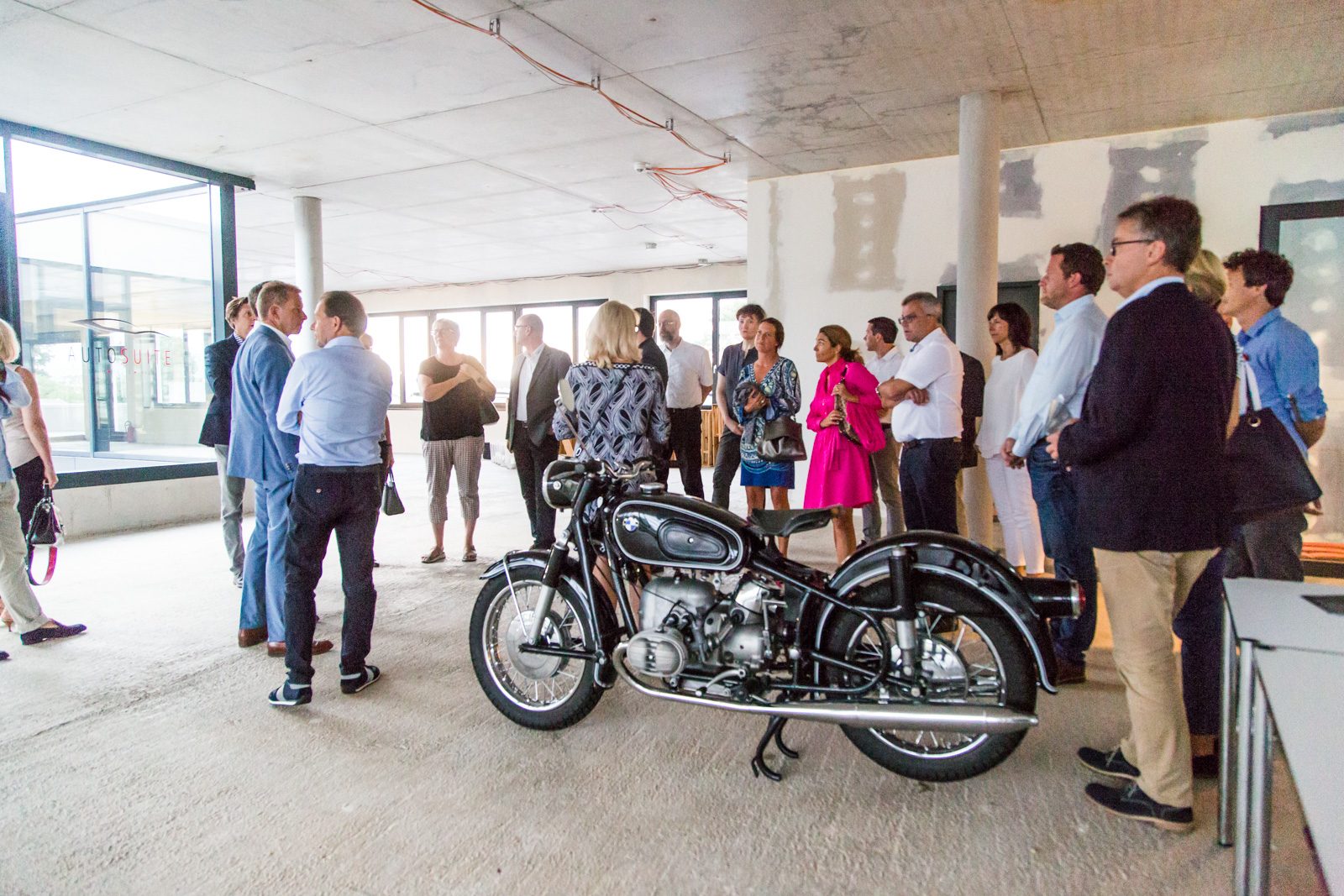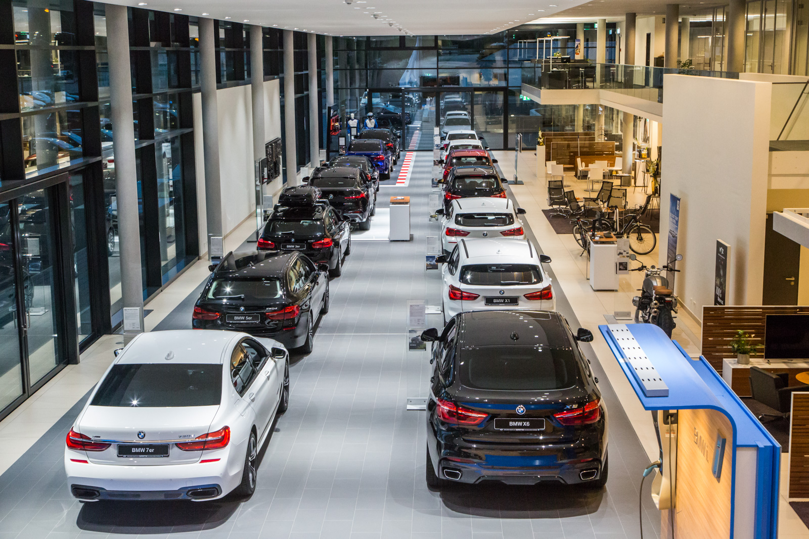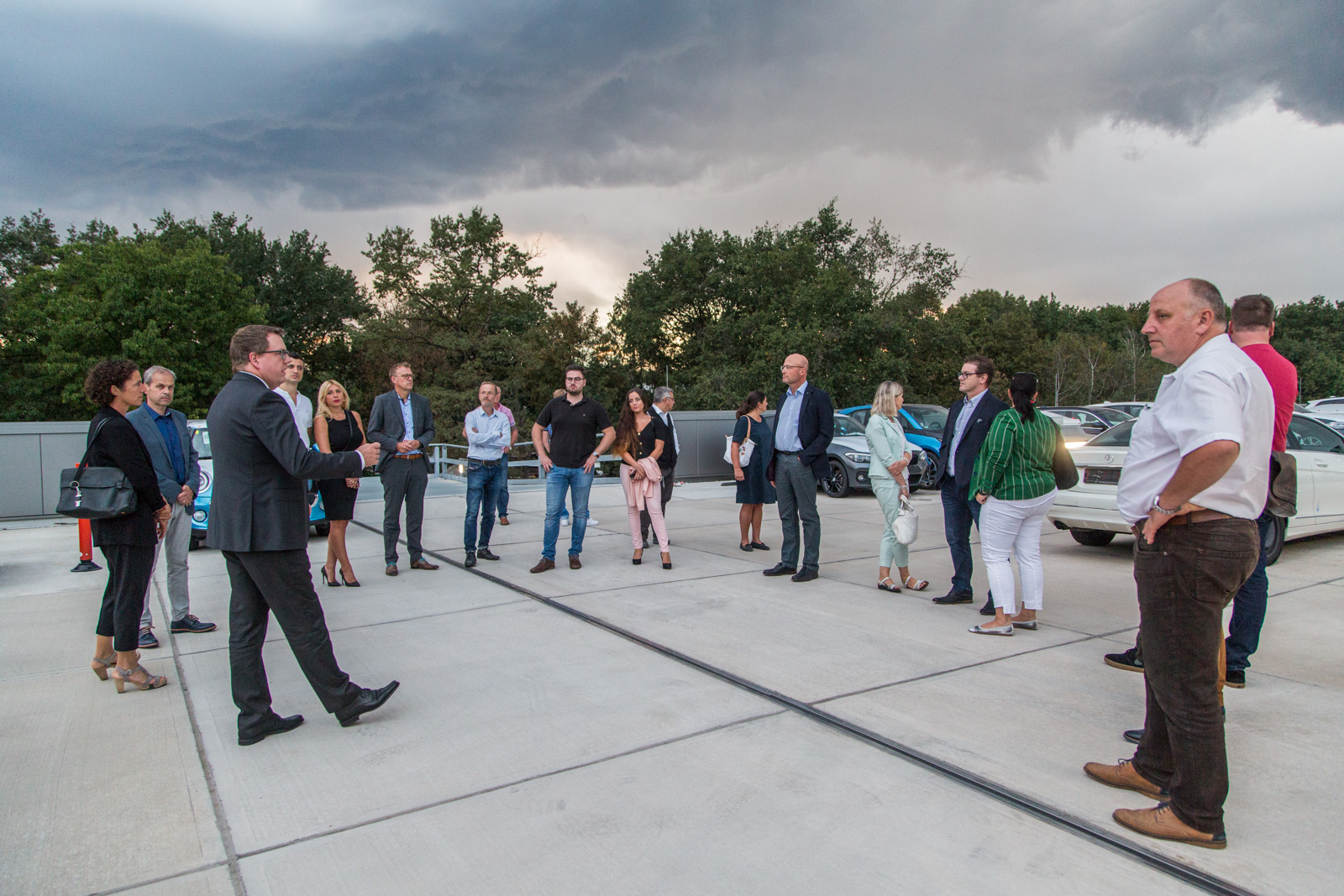 Nach der Begrüßung und den Ausführungen durch den Vorsitzenden der IG Nord und Haid, Christian Schulz wurde klar, dass es ein langwieriger und aufwendiger Prozess war, bis das neue “Multifunktional-Gebäude” von Märtin stand. “Man weiß nicht, wie sich die Mobilität der Zukunft entwickeln wird”, waren sich Hansjörg Märtin und seine beiden Geschäftsführer Dirk Zimmermann und Tobias Gutgesell einig. Daher sei es ihm wichtig gewesen, auf dem 20.000 m² Areal im Norden der Stadt ein besonders wandlungsfähiges Haus zu realisieren. Von der Idee bei einem Workshop mit seinen Führungskräften bis zur Eröffnung vor wenigen Wochen sind mehr als fünf Jahre ins Land gegangen, das BMW und MINI Autohaus verfügt nun über rund 11.000 m² Geschäftsfläche. “Wir sind etwa ein Drittel größer als an unserem alten Standort”, so der Inhaber des Unternehmens nicht ohne Stolz. Alleine die Werkstattfläche sei verdoppelt worden. Als klar gewesen sei, dass seine Mietverträge am alten Standort auslaufen und BMW zudem ein neues, komplett überarbeitetes CI für seine Häuser auflegen würde, das auch Märtin umsetzen musste, sei die Entscheidung für den Umzug und den Neubau nur folgerichtig gewesen.