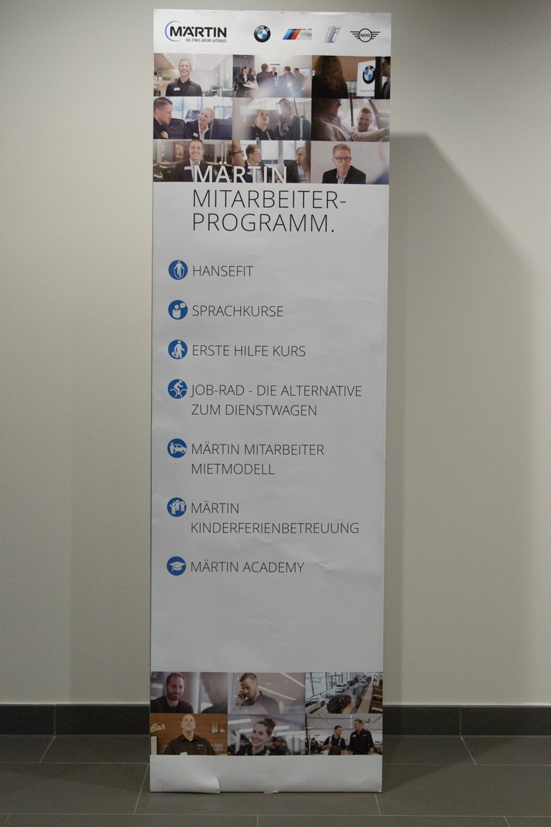 Vier Standorte betreibt Märtin heute in Bötzingen, Emmendingen und Freiburg, wo man neben dem Autohaus auch ein Motorradgeschäft betreibt. Das neue Flaggschiff des Unternehmens an der Hermann-Mitsch-Straße verfügt über rund 100 Arbeitsplätze, insgesamt beschäftigt die Märtin-Gruppe rund 200 Menschen, über 40 davon sind Auszubildende. Nicht nur denen müsse man als Arbeitgeber heute etwas bieten, wie Hansjörg Märtin betont: Vom Job-Rad über den Erste-Hilfe-Kurs bis zum Sprachkurs und der Ferienkinderbetreuung reicht hier die Palette der Aktivitäten.