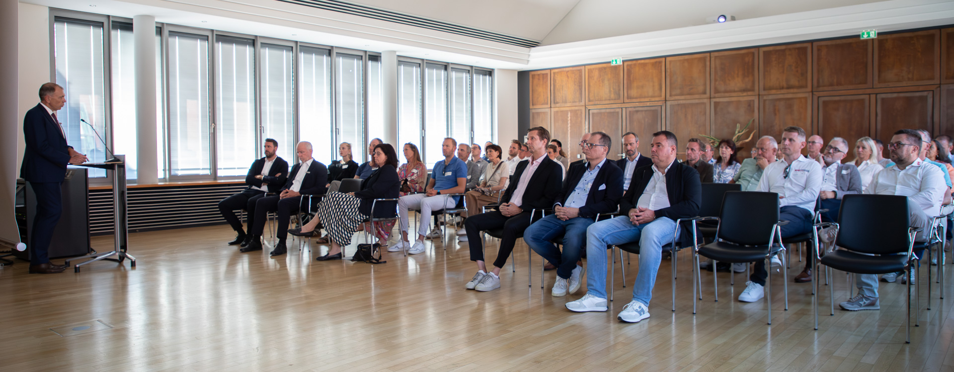 Der Vortrag beleuchtete die aktuelle Lage der Unternehmensnachfolge im deutschen Mittelstand: Rund 532.000 Unternehmen streben bis Ende 2028 eine Nachfolge an. Die Sparkasse unterstützt mit einem breiten Beratungsangebot: