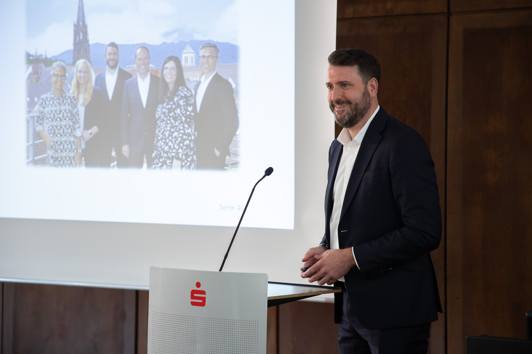 Bernd Rigl, stellvertretender Vorstandsvorsitzender und Verantwortlicher für gewerbliche Kunden bei der Sparkasse Freiburg Nördlicher Breisgau, stellte die Bank vor und gab einen interessanten Überblick über die vielfältigen Geschäftsfelder.