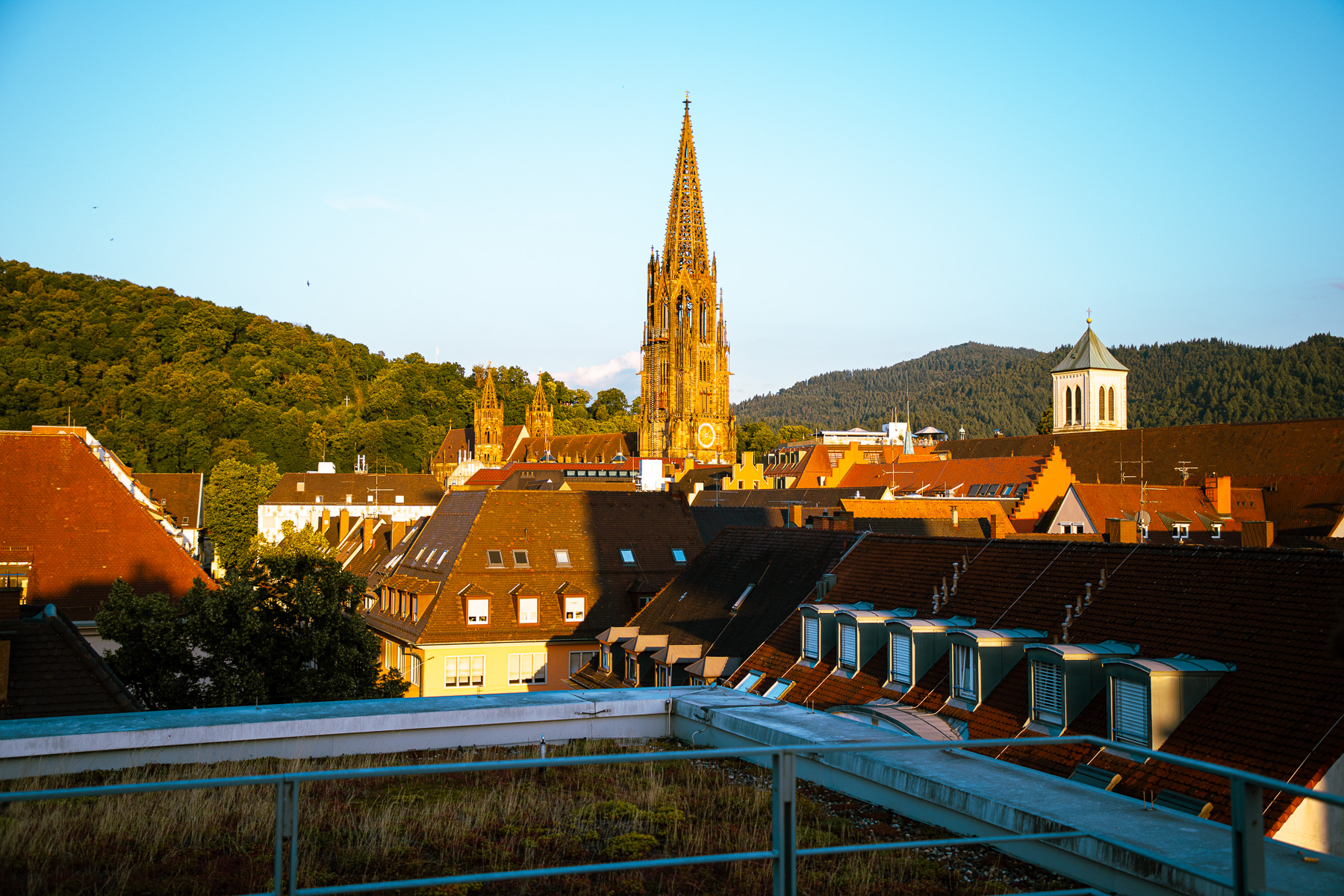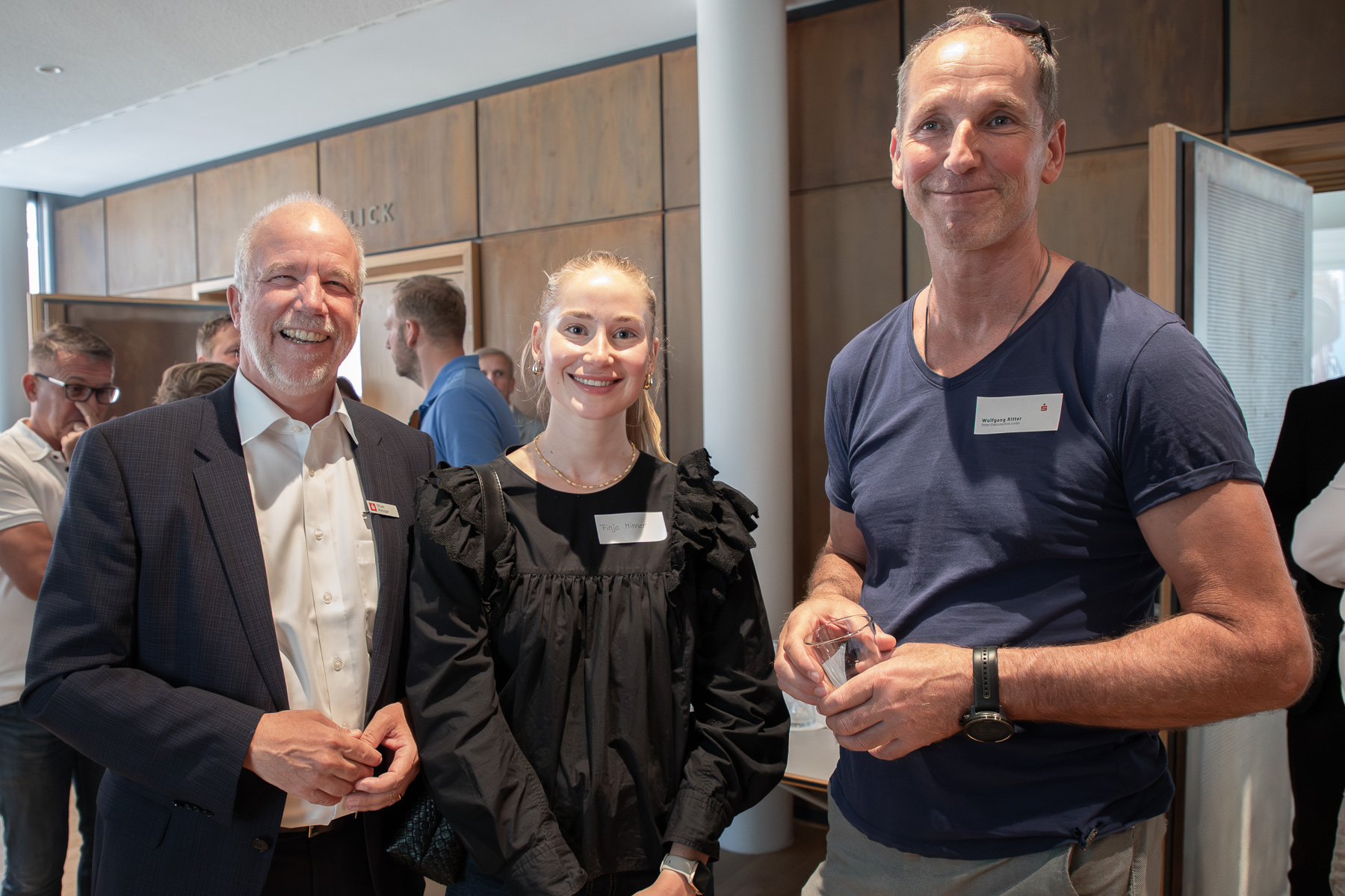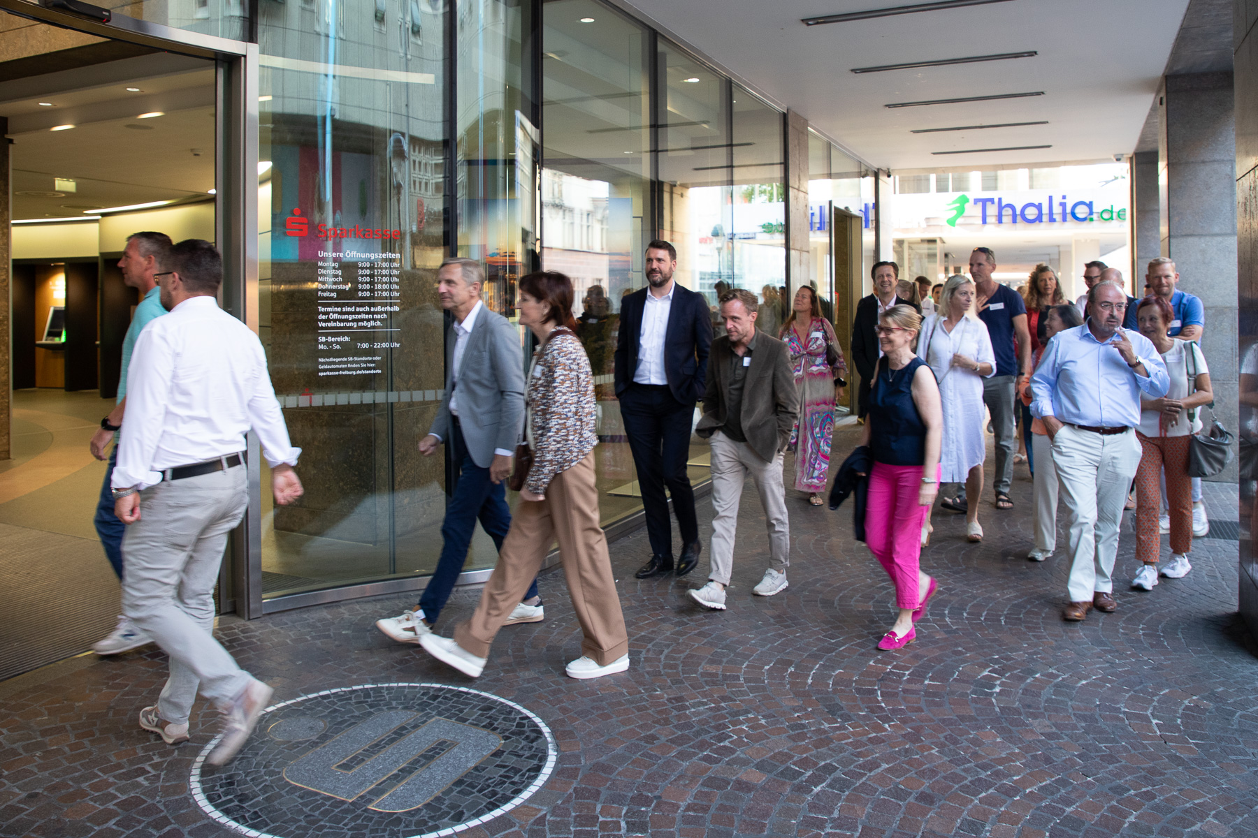 Nach einer kurzweiligen und sehr interessanten Führung durch die neue Vorstandsetage und weitere historisch bemerkenswerte Bereiche im denkmalgeschützten Bereich des eindrucksvollen Gebäudes wechselten wir auf die unvergessliche Dachterrasse mit Münsterblick. Der Abend klang bei köstlichen kleinen Leckereien und erlesenen regionalen Getränken aus, begleitet von anregenden Gesprächen und einem vielfältigen Austausch.