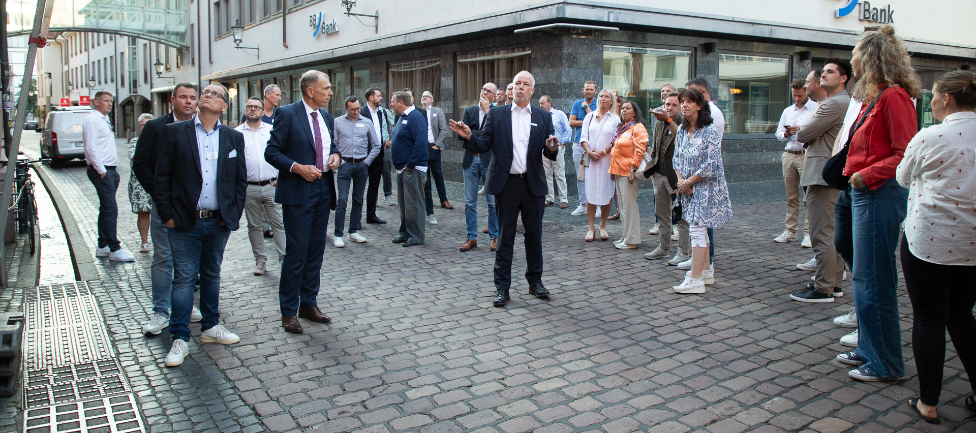 Die Premiere mit der ersten Bank im Netzwerk der Freiburger Unternehmerkreise IG Haid und IG Nord ist bestens gelungen. Die Sparkasse Nördlicher Breisgau gewährte unserem Kreis einen exklusiven Einblick hinter die Kulissen des attraktiven Hauptsitzes der Sparkasse in der Freiburger Innenstadt.