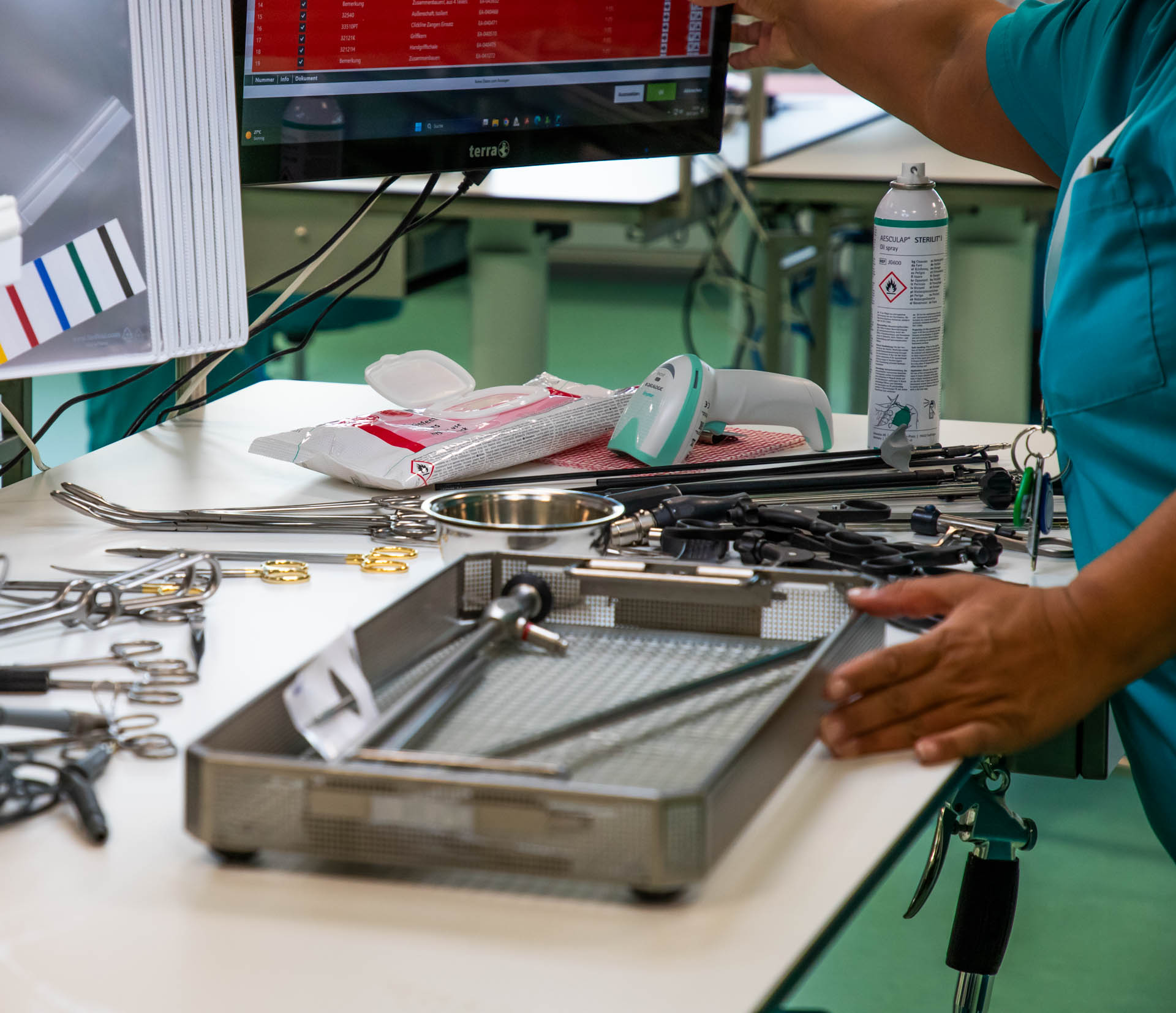 „Wir sind hier am 1. Juli mit einer klaren Vision gestartet“, so Geschäftsführerin Antonella Werner. „Mit unseren hochmodernen, effizienten Lösungen für Praxen und Kliniken stoßen wir in eine Marktlücke im Dreiländereck.“ Vergleichbare Unternehmen gäbe es bundesweit bisher nur wenige, so m-sas-Gesellschafter Thomas Werner. Dabei sei klar: „Ohne AEMP keine OP!“ Wobei „AEMP“ für die „Aufbereitungseinheit für Medizinprodukte“ als Abkürzung steht. Denn genau das ist das Kerngeschäft der m-sas GmbH: die Firma setzt neue Maßstäbe in der Aufbereitung von Sterilgut. Dafür ist der Betrieb DIN-verifiziert und setzt bei der Ausstattung ganz auf die führende Expertise des GETINGE-Medizintechnikkonzerns aus Schweden, dessen Geräte für eine reproduzierbare, validierte Qualität bei der Reinigung von OP-Besteck und anderen Medizingeräten steht. Die Verifizierung bedeutet, dass jedes Gerät, das in Riegel bei der m-sas GmbH gereinigt wird, für den Zeitraum von 30 Jahren nachverfolgbar bleibt, denn so lange dauert die Dokumentationspflicht jedes Arbeitsganges, der in Riegel durchgeführt wird, so Betriebsleiter Marius Ponciu: „Es geht hier schließlich um Patientenleben! Und da müssen wir Qualität bringen!“ Von der manuellen Aufbereitung der angelieferten Geräte bis zur Dampfsterilisation am Ende des Arbeitsganges ist jeder Arbeitsschritt genau vorgeschrieben, so Betriebsleiterin Sindy Wenzel.