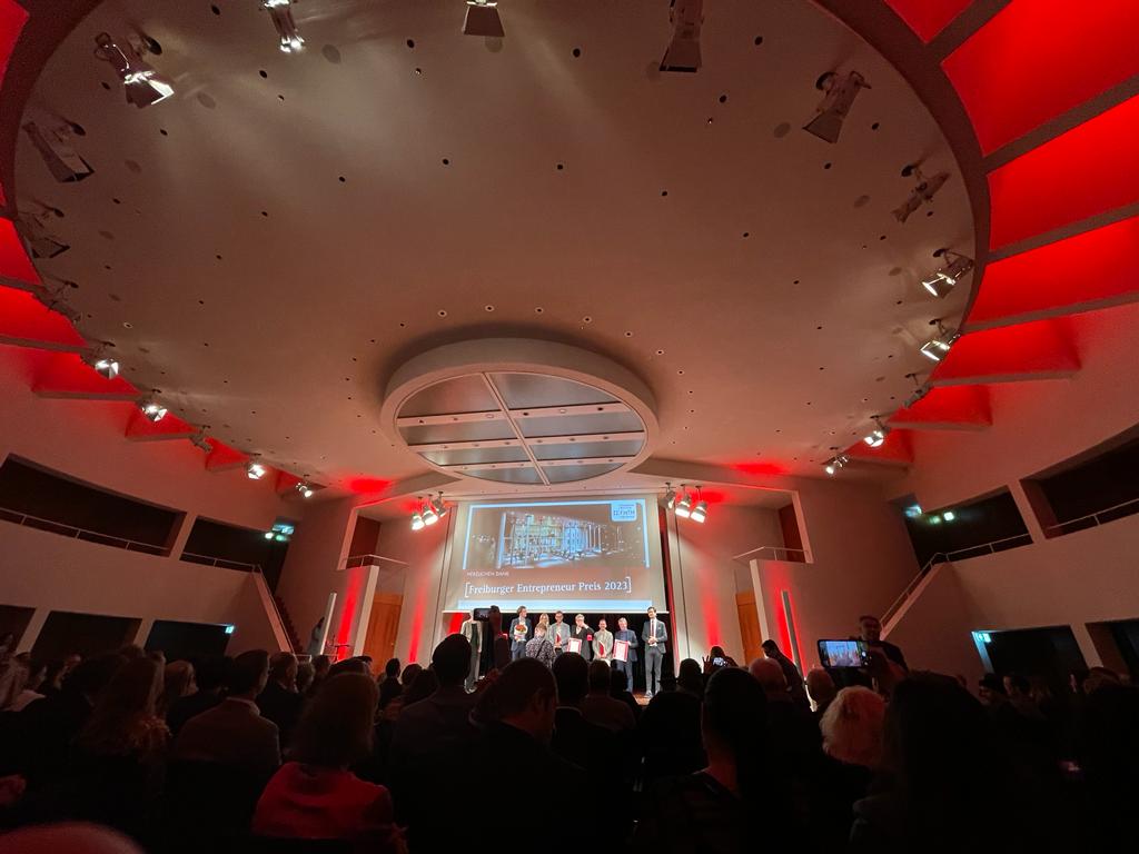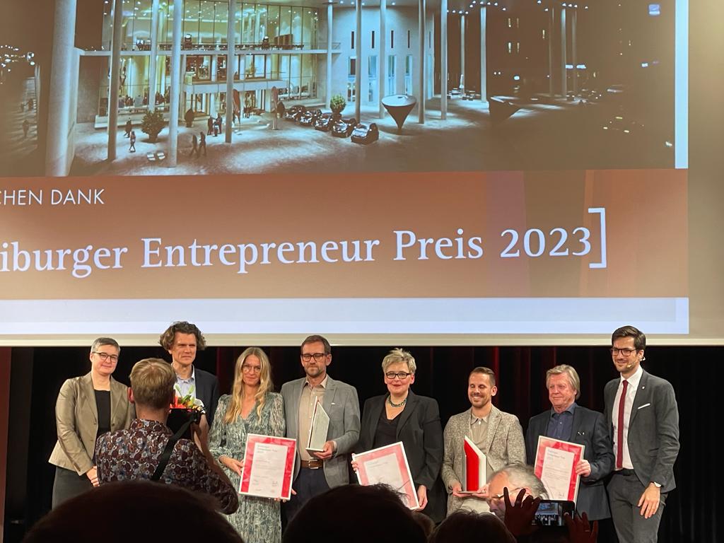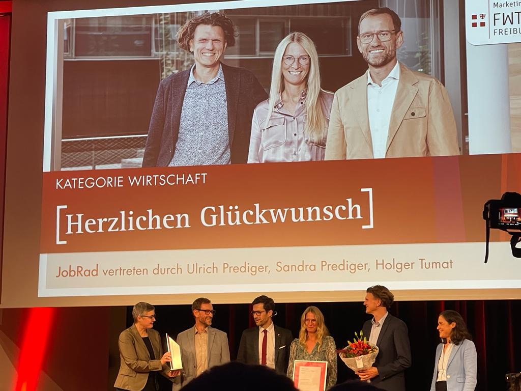 Die Freiburg Wirtschaft Touristik und Messe (FWTM) hat am Dienstagabend im Runden Saal des Konzerthauses zum sechsten Mal den Freiburger Entrepreneur-Preis verliehen. Die Preisträger im Jahr 2023 sind das Dienstrad-Leasing-Unternehmen Jobrad, die Kranz Live Eventsolution als Veranstaltungs-Dienstleister und das Einzelhandelsgeschäft Stiegeler Schlafkomfort. Überreicht wurden die Auszeichnungen durch Oberbürgermeister Martin Horn und FWTM-Geschäftsführerin Hanna Böhme. "Der Standort Freiburg hat viele herausragende Entrepreneure, die sich nicht nur mit wirtschaftlichem Erfolg, sondern auch durch gesellschaftliches Engagement hervorheben", meinte Oberbürgermeister Horn in seiner Rede. Verliehen wird der Entrepreneur-Preis in jedem Jahr in den drei Kategorien Wirtschaft, Handel und Tourismus sowie Kongress- und Messewesen/ Veranstaltungen.